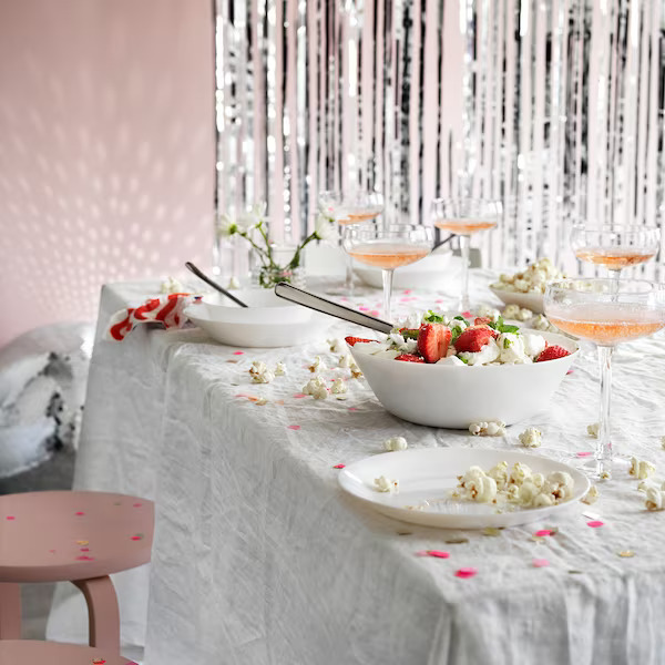 Ovo stono posuđe istog je izgleda kao koštani porcelan, ali izrađeno od kaljenog stakla, izdržljivog materijala koji je veoma otporan na nagle promjene temperatura.